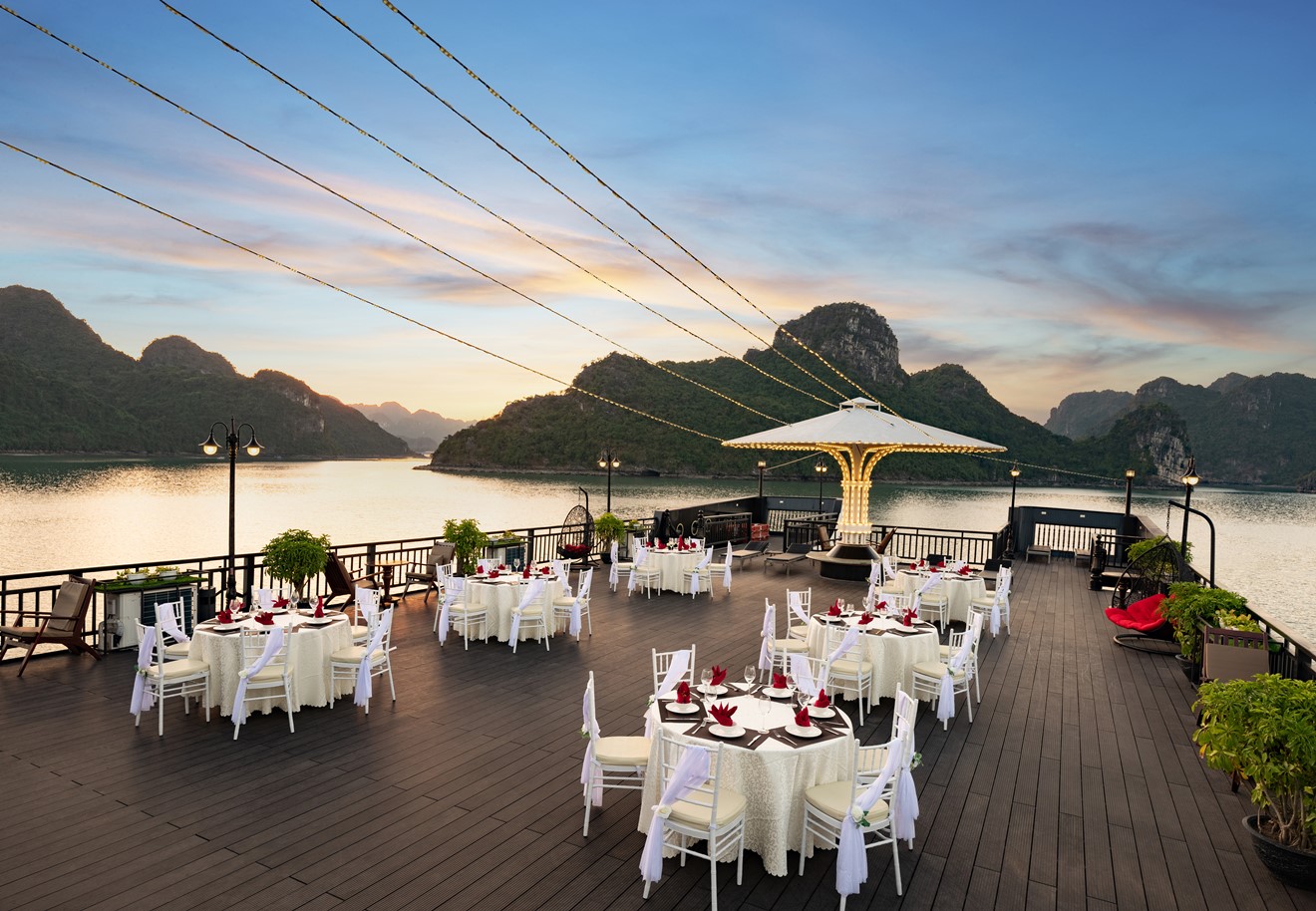 17:30 - 18:30 Enjoy Afternoon Tea Party with free freshly prepared snacks fruit and your ordered favorite drinks while waiting for sunset on Lan Ha Bay. Take advantage of the Happy hours “Buy 2 get 1 free” drink program at the Mimosa Cafe Lounge and the Sky bar on 5th floor